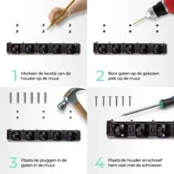 BOTC Bezemhouder – 4 Stuks – RVS – Bezem Ophangsysteem – Bezem Houder – Tuingereedschap – Zwart