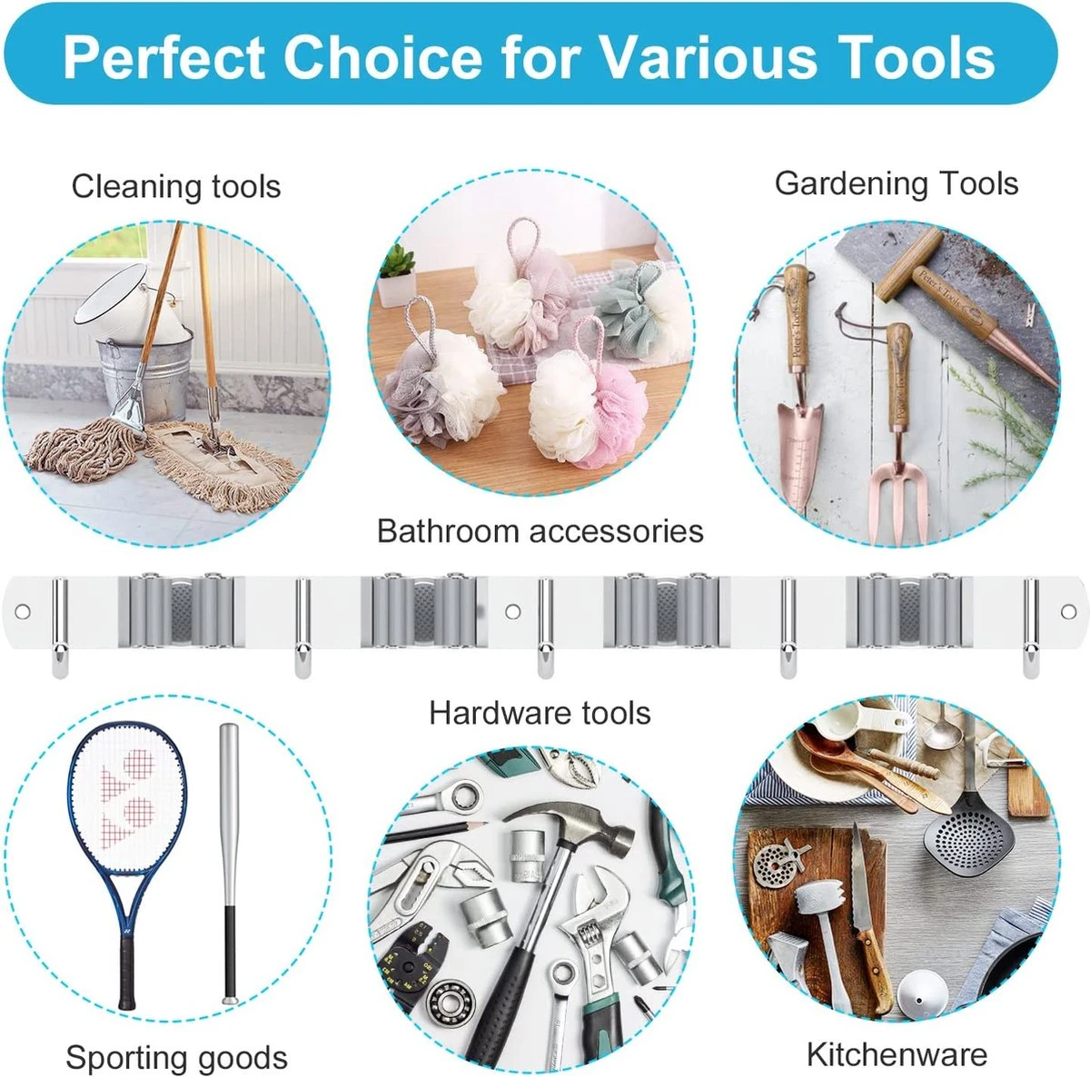 【Mop- en bezemhouder-muurbevestiging】 Deze bezem-organizer-muurbevestiging is geschikt voor het organiseren van uw schoonmaakbenodigdheden, tuingereedschap, sportartikelen, keukengerei, badkameraccessoires en hardwaregereedschap. De bezemhouder is de beste metgezel in je keuken, badkamer, garage en wasruimte, zelfs in de schuur van je tuin, houd je werkruimte schoon en netjes.